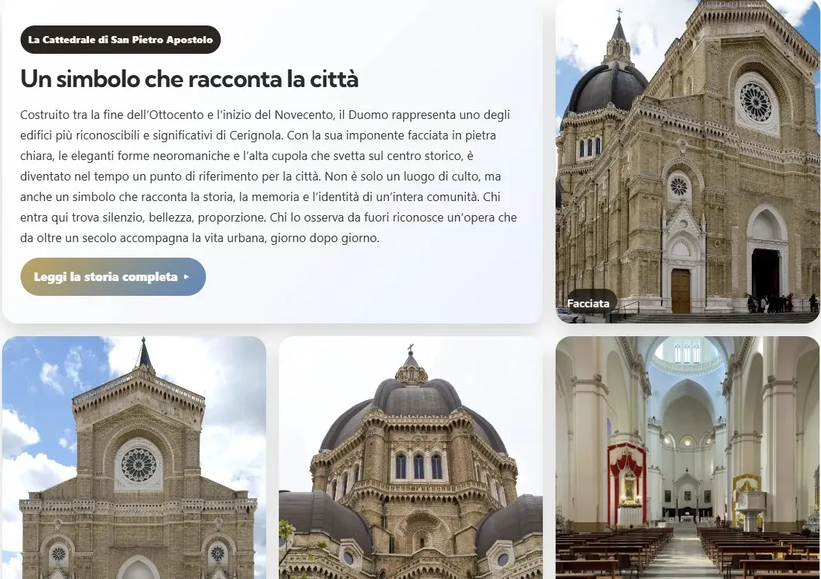 Abbiamo progettato e sviluppato il sito ufficiale cattedraledicerignola.it, con l’obiettivo di valorizzare la storia, le attività pastorali e gli eventi della Cattedrale. Il sito è stato realizzato con un design moderno e istituzionale, ottimizzato per dispositivi mobili.